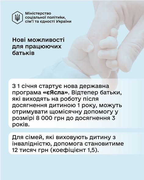 Про те, які нові виплати та програми підтримки діятимуть для сімей з 2026 року, — детальніше дивіться в нашій інфографіці.