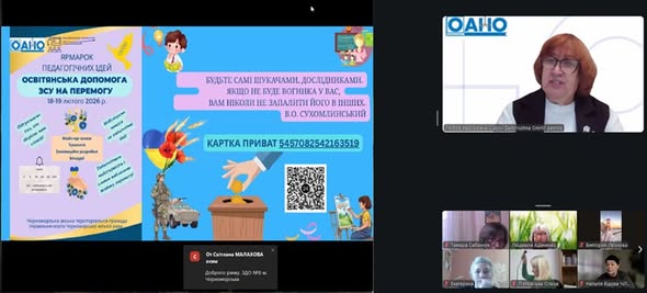 18–19 лютого відбувся ІV Благодійний онлайн-ярмарок педагогічних ідей "Освітянська допомога ЗСУ на Перемогу" за підтримки Академії неперервної освіти Одеської обласної ради та управління освіти Чорноморської міської ради. Захід об’єднав освітян Одещини навколо спільної мети — професійного розвитку та благодійної допомоги Збройним Силам України.