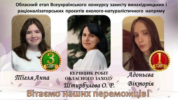 · Диплом I ступеня — Адоньєва Вікторія (11 клас, Бессарабський ліцей). Проєкт: «Амброзія полинолиста — від виявлення до аналізу шкоди».